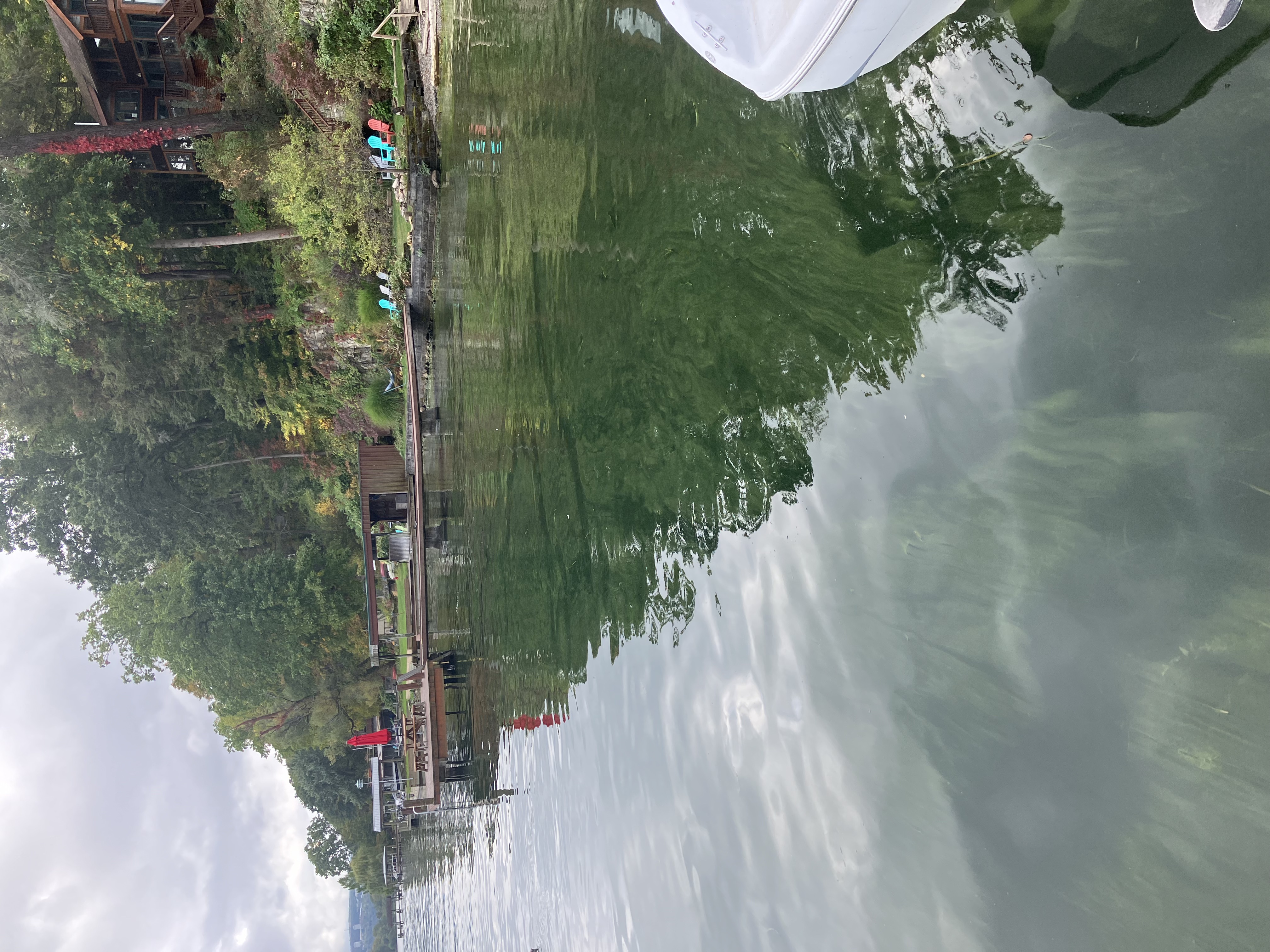 Volunteer Reports: The HAB appears to be all along the SW shore. Partly Cloudy, Air Temp in low 70s F, calm wind and water. According to my neighbor, the bloom has appeared to occur at least all day today and perhaps began yesterday