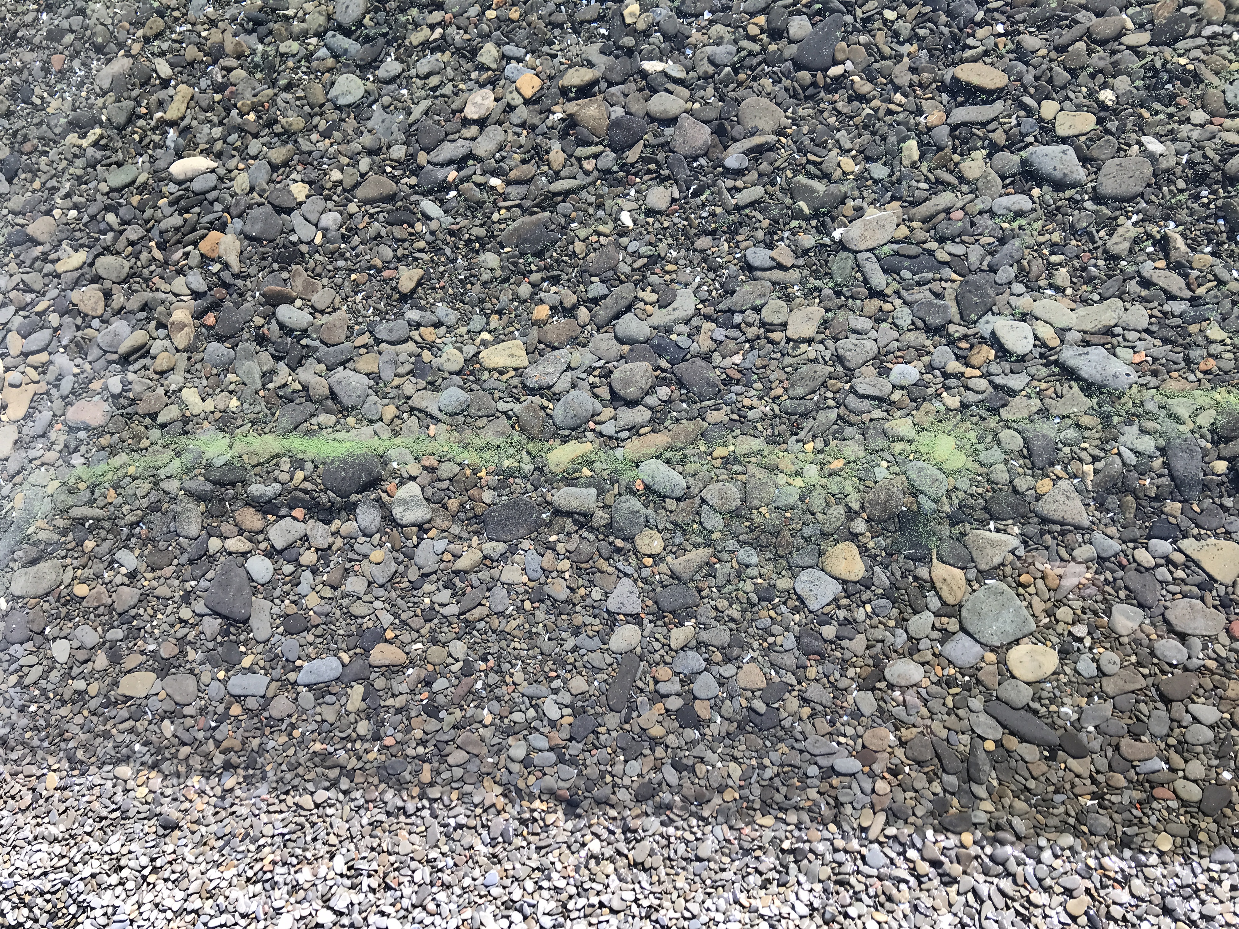 Volunteer reported: Very calm/no wind, clear water, no waves. There were HABs all over the marina, mostly very thin scattering on the surface/shallow depths, few clumps. I saw this thin speckling all around the South Point, past the fishing pier and to the swimming beach. The photos are at the beach. It seems that without the wind to push the HABs against the shore, they stayed widely spread and very thin, with little clumping. They covered a large area of the marina and lake shore at the park. HAB persistent for month +/