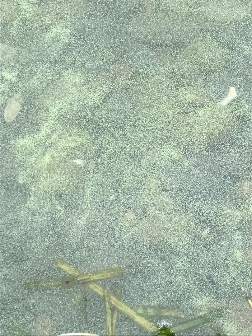 Volunteer reports: calm lake, not too dense of HAB's. Disappeared when wind picked up the morning after (8/30/24) mainly hugged shoreline.